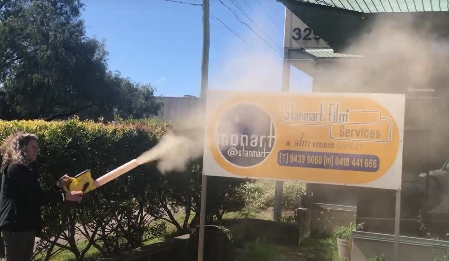 The Dustin-Mizer is ideal for on set FX, uniformly aging sets and wardrobe propelling dust 20-30 feet, also useful for dusting your tomatoes plants.